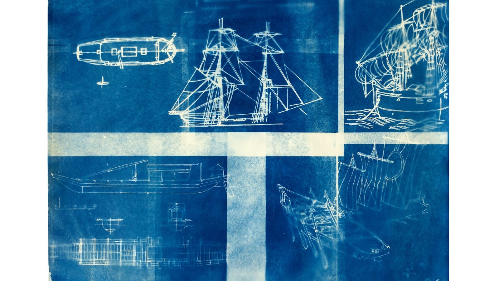 Central to Pedley’s approach is a deep sensitivity to materials. Using handmade Awagami paper, indigo dye, inks, cyanotypes, rope, plaster and sound, she explores how stories take shape and how they drift, fragment and resurface. These are the same materials once used by samurai illustrators, creating a tactile link to the Japanese manuscripts that recorded the Cyprus encounter. Long forgotten, these documents were rediscovered by researcher Nick Russell, whose work has helped confirm the accuracy of the convicts’ accounts and shed light on the Japanese perspective.