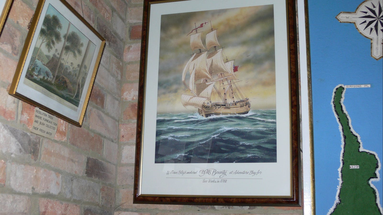 Built from thousands of convict-made bricks, the Bligh Museum of Pacific Exploration features a specialised collection relating to exploration in the South Pacific. A display of maps, documents, paintings and other artefacts offers a historical record of visits to Adventure Bay by explorers Captain William Bligh, Captain James Cook, Tobias Furneaux, Matthew Flinders and Admiral Joseph-Antoine Bruny D’Entrecasteaux. Notable works by Tobin, Webber and Hodges are also included in the collection.