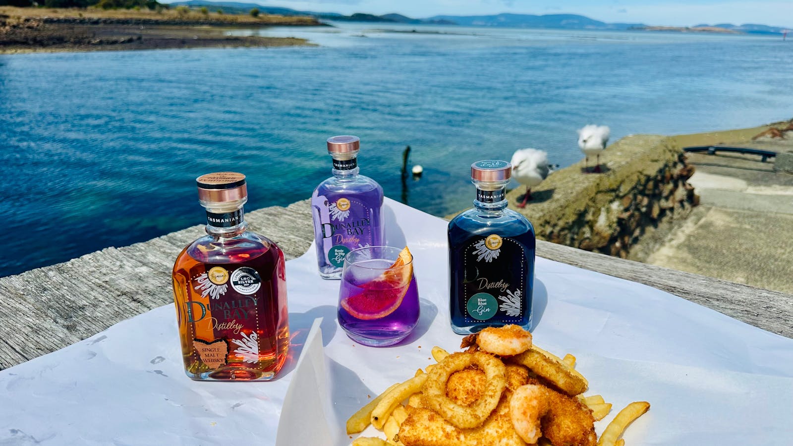 Welcome to Dunalley Bay Distillery, the perfect spot to relax and enjoy delicious food and drinks with breathtaking views of Dunalley Bay! Try their award-winning gin and whisky for a unique tasting experience.