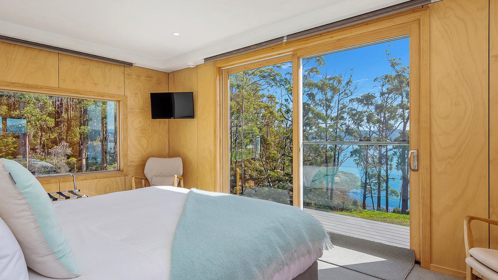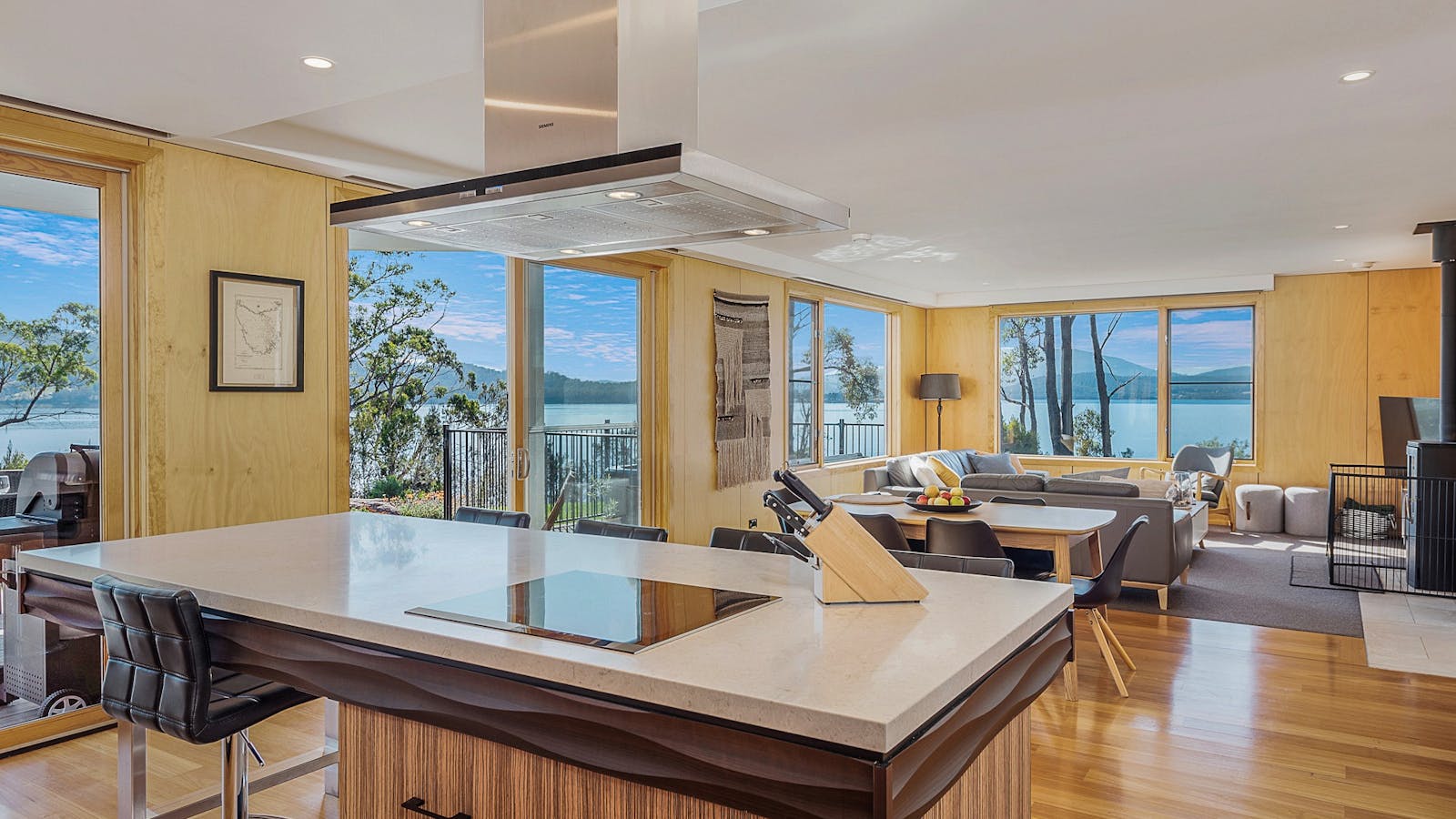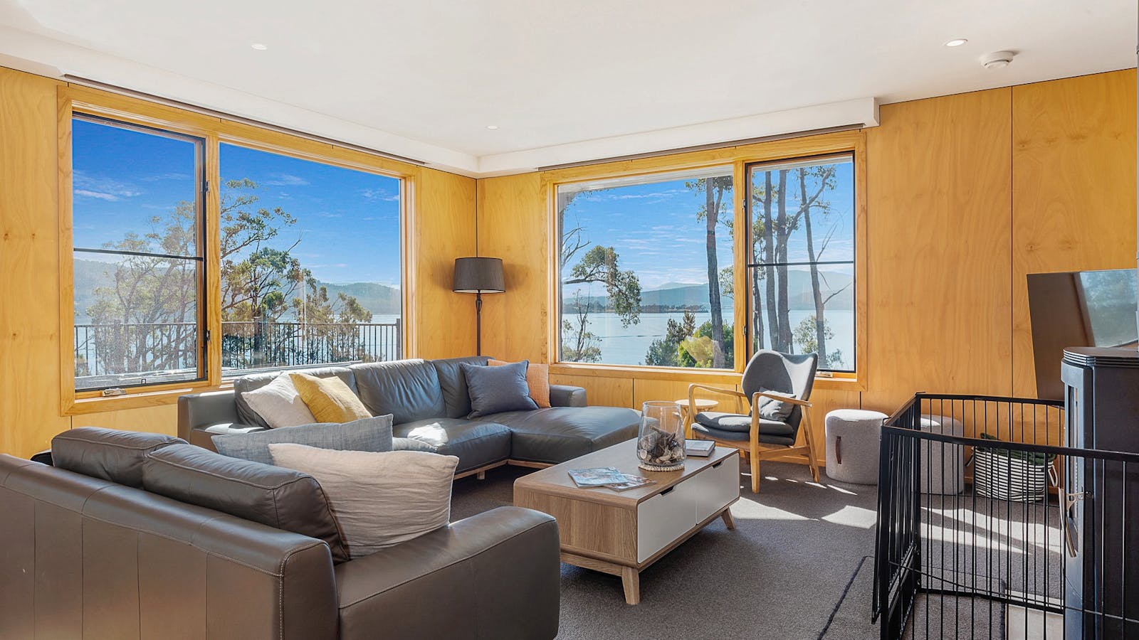 The beautifully crafted and luxurious three-bedroom accommodation is only one hour from Hobart and sits on the banks of the magnificent Huon River, with a glorious outlook and direct access to your own private beach.