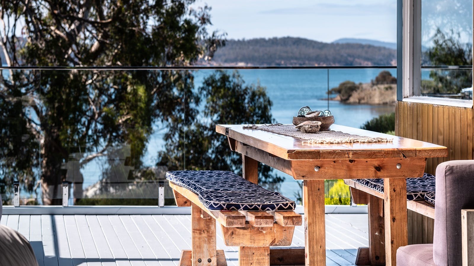 The perfect spot to relax with a glass of local Tassie wine, fresh seafood or a sumptuous Eye Fillet sizzling on the BBQ, while enjoying a breathtaking view, with family, friends or just the two of you.
