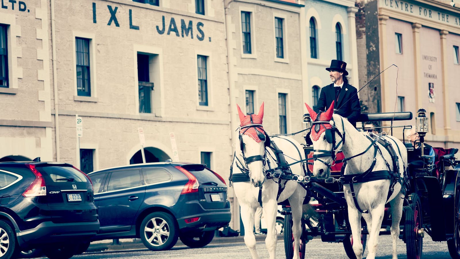 Our carriage tours immerse you in the colonial past of Hobart. Drawn by two beautiful horses, the carriage is a stunning replica of 19th century vis a vis (face to face) carriage. Feel like royalty traveling with the top down, enjoying the sunshine or close the top in inclement weather and still enjoy the sights. Your driver and groom are also dressed in 19th-century livery to complete the picture.