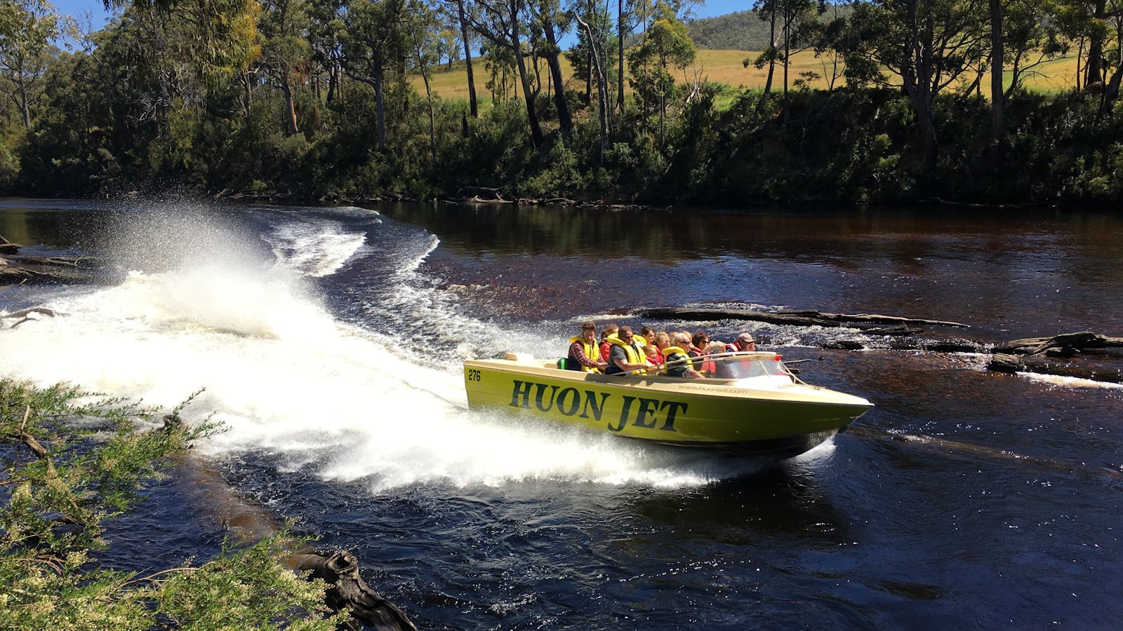 Huon River Jet Boats offer Australia’s only whitewater jet boating experience with high-speed jet boat tours on the Huon River, Southern Tasmania. Huon River Jet Boats is based in Huonville, 35-minute drive southwest of Hobart (48 km) in the Huon Valley.