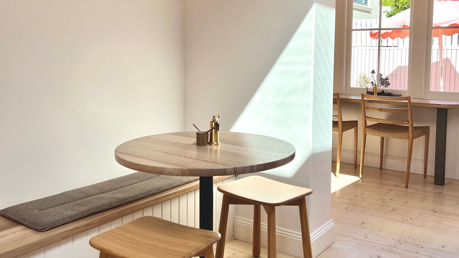 Built in 1853, the interior of Lēoht’s historic Georgian cottage celebrates natural light, Tasmanian timbers, local brick, woven textures and wool. A working fireplace, sunlit front terrace and rear courtyard (both dog friendly) make this a warm and inviting year-round dining destination.