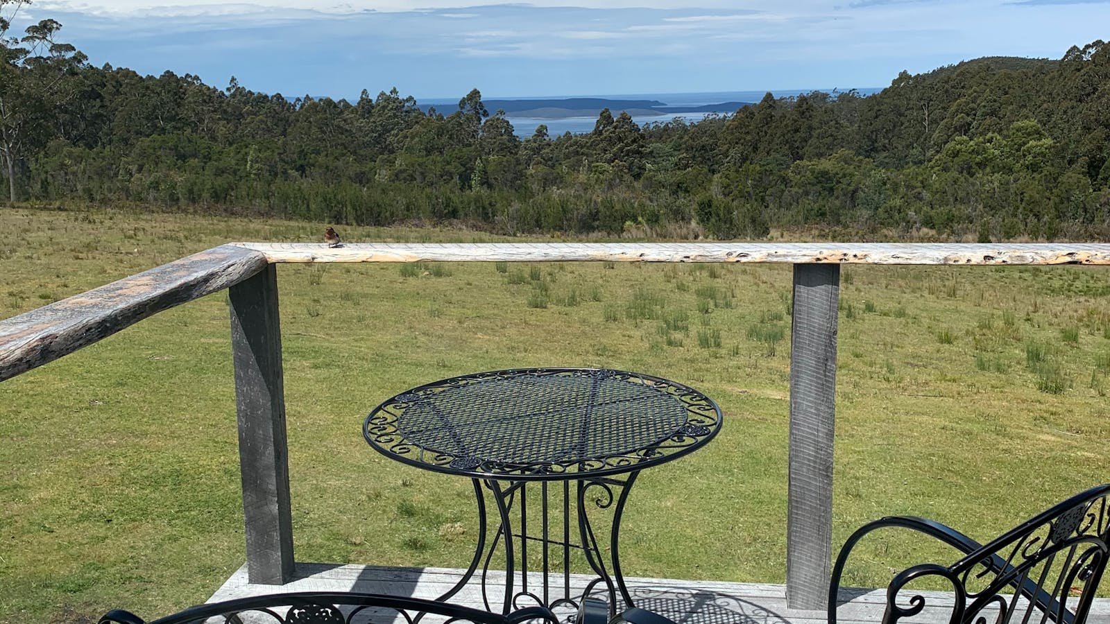 Misty Ridge Cottage is on its own private pasture overlooking Bruny Island and the forest.