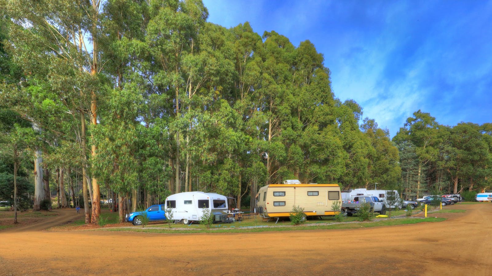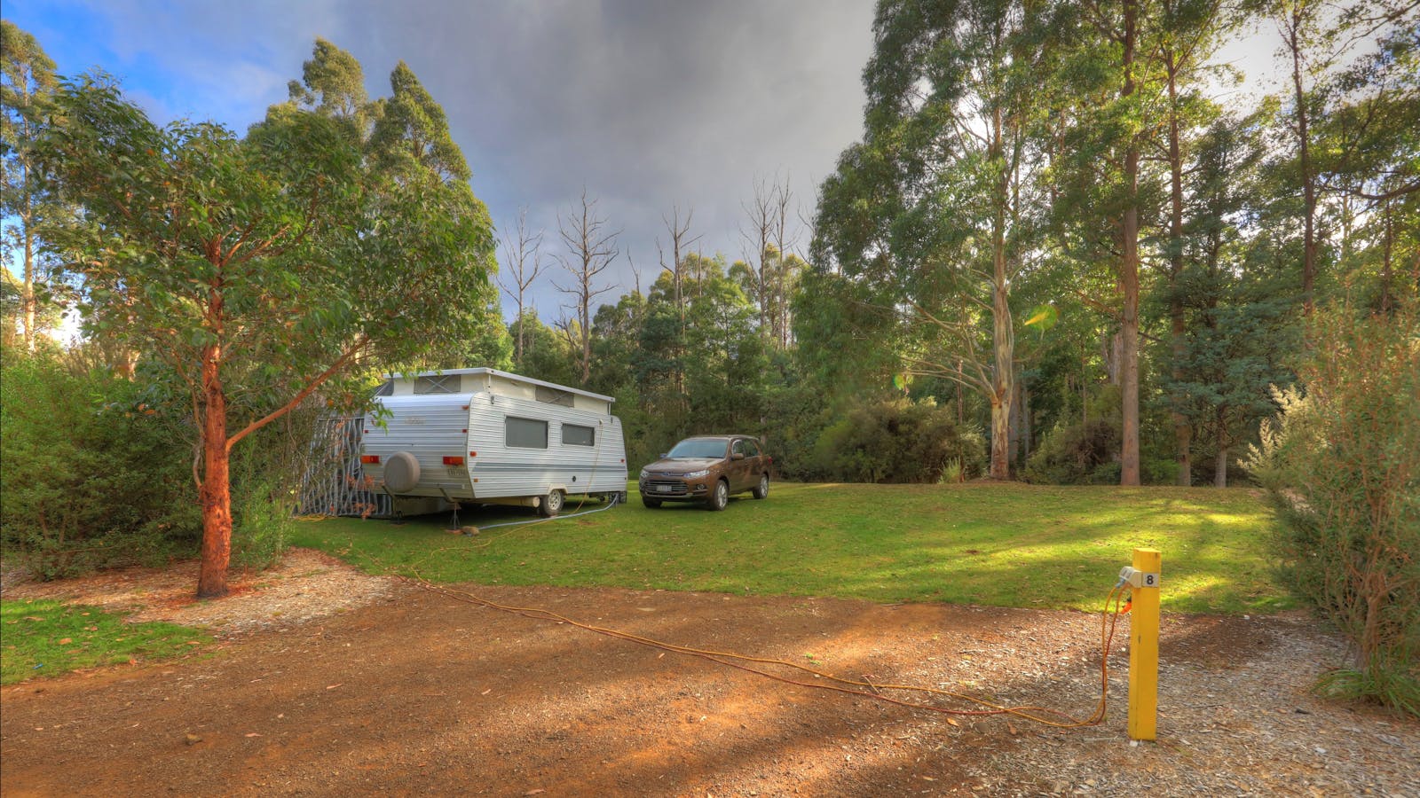 The surrounding mature white gum forest is home to abundant birdlife and the valley hosts pairs of wedged tail eagles and are often seen souring high above the campground.