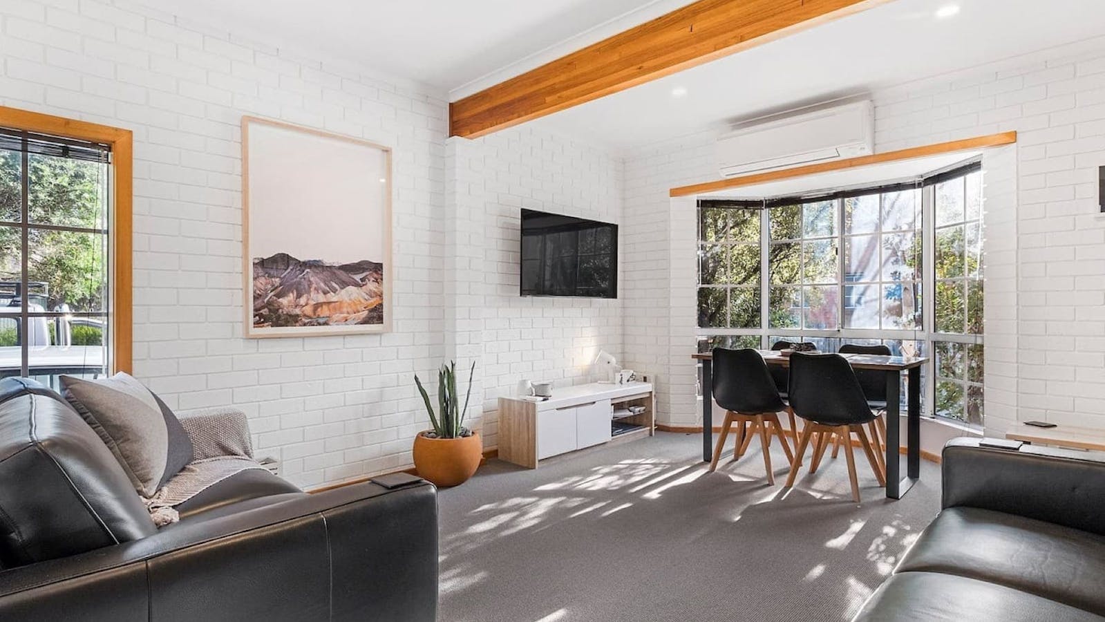 Warm and cosy in winter and cool in Summer with a reverse cycle air conditioner plus upstairs heating.
