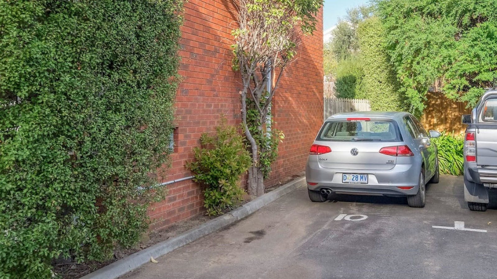Designated off-street parking space adjacent to the townhouse makes it extra convenient to check in and unpack the shopping. (Kitchen is downstairs)