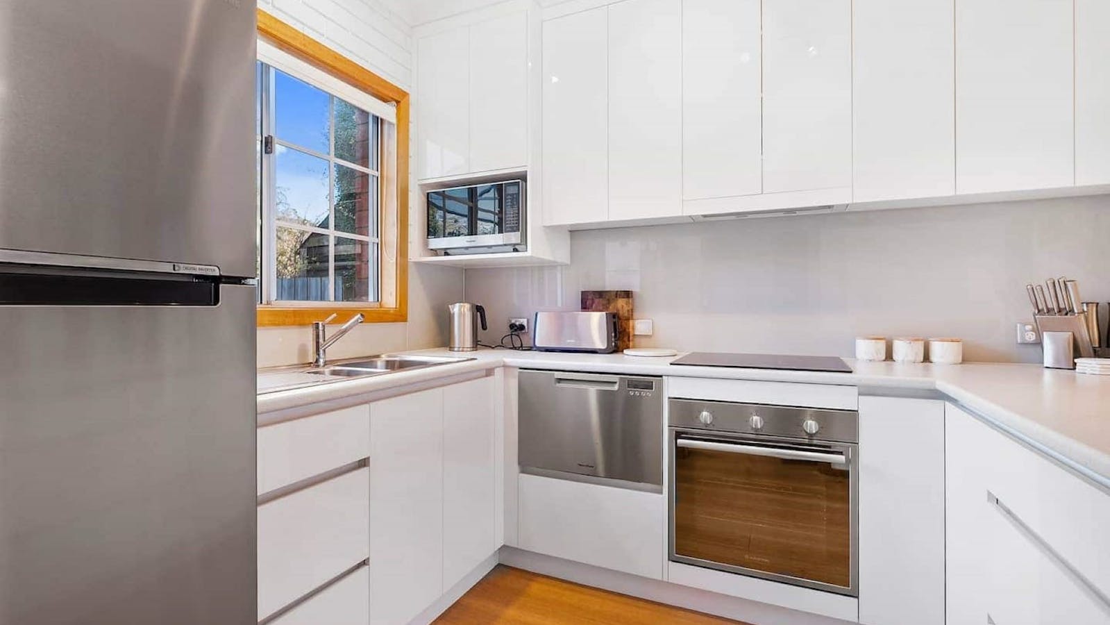 The home easily accommodates four people upstairs in two generous and well-appointed separate bedrooms. The huge front bedroom even has a sun-drenched reading nook.