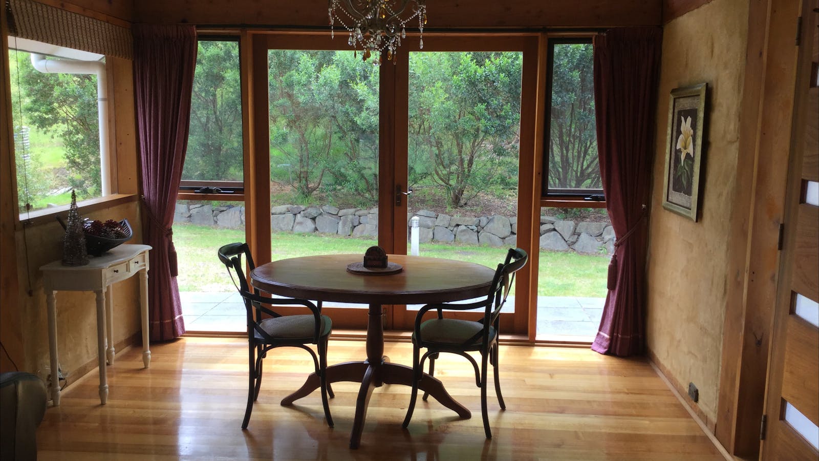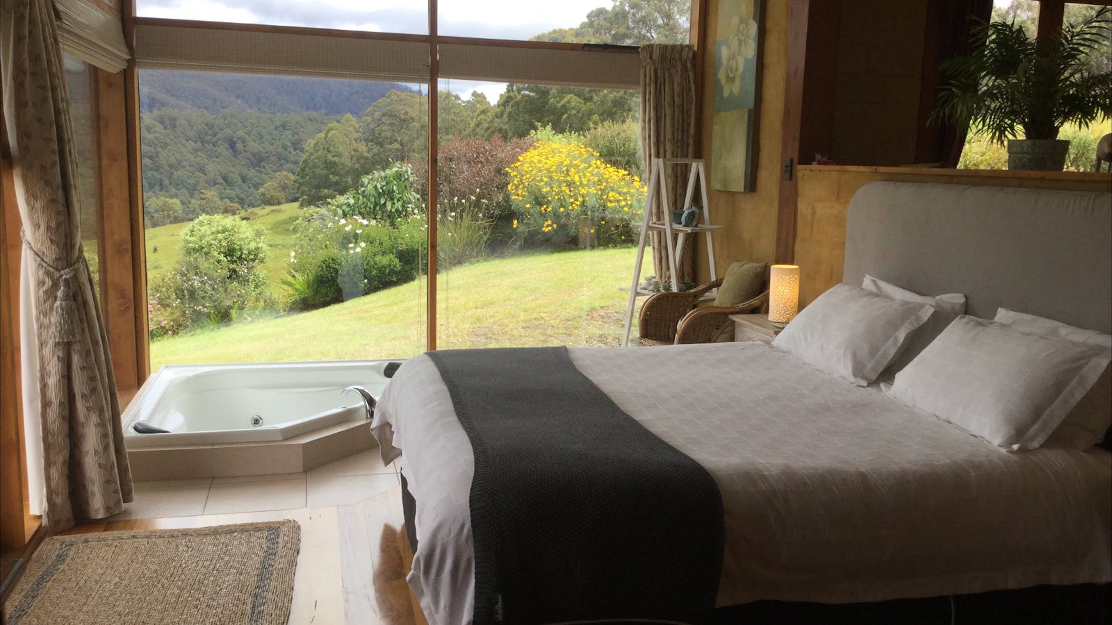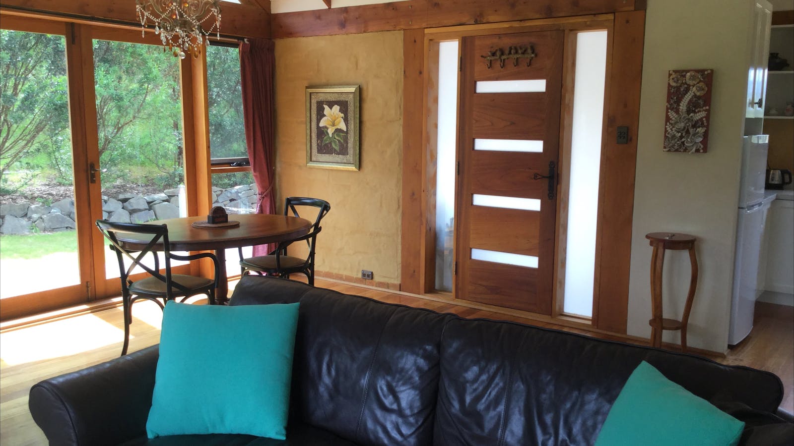 Exclusively yours, this unique, self-contained, one-bedroom, romantic hideaway will feel like your own luxury home. Perched high amongst the hills, this romantic getaway oozes warmth, luxurious comfort and the earthy character of genuine hand-built mud brick and timber cottage.