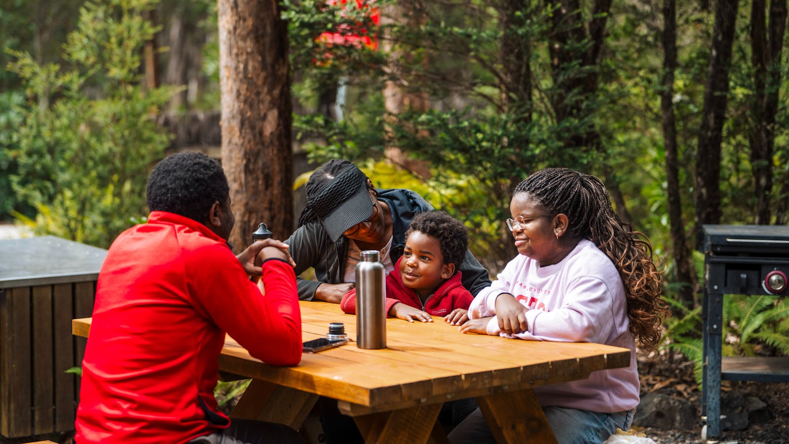 The Tahune Cabin offers private, self-catering accommodation for up to four people. The cabin has two bedrooms, one with queen bed and another with a set of bunk beds. Porta cot is available on request. There is a fully-equipped kitchen, bathroom, lounge area and television/movies.