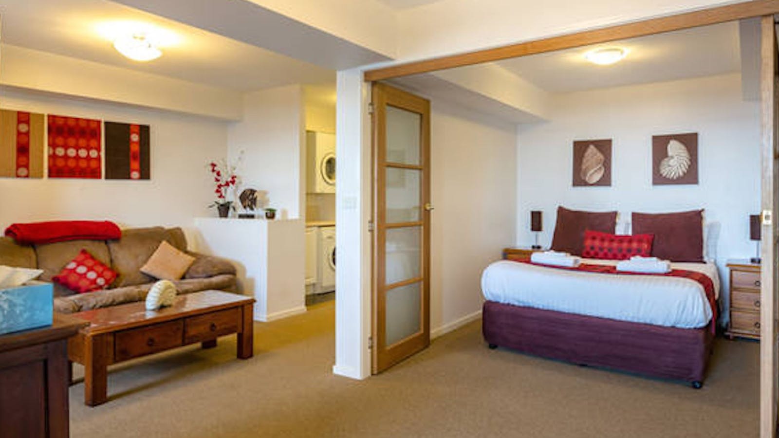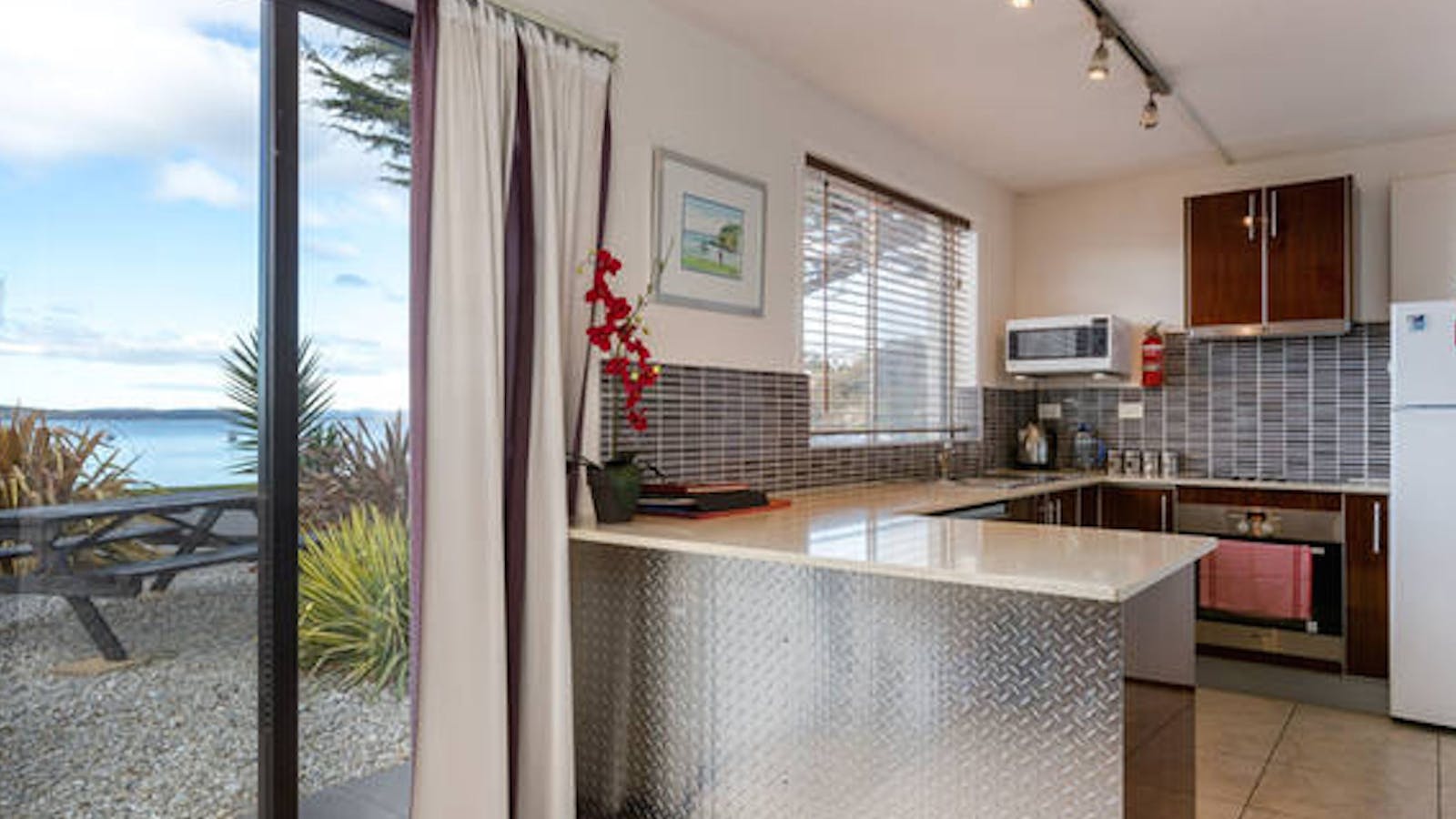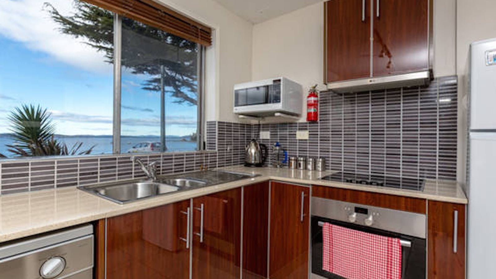 The Beach Apartments are located on the beachfront at beautiful Blackmans Bay. They are less than a 20-minute drive south of Hobart’s CBD and a five-minute drive from the bustling shopping and business district of Kingston. Ideally suited for great getaways, the apartment boasts spectacular ocean views from every room, except the bathroom. So, for the beach, romance or relaxation, this is the place to do it!