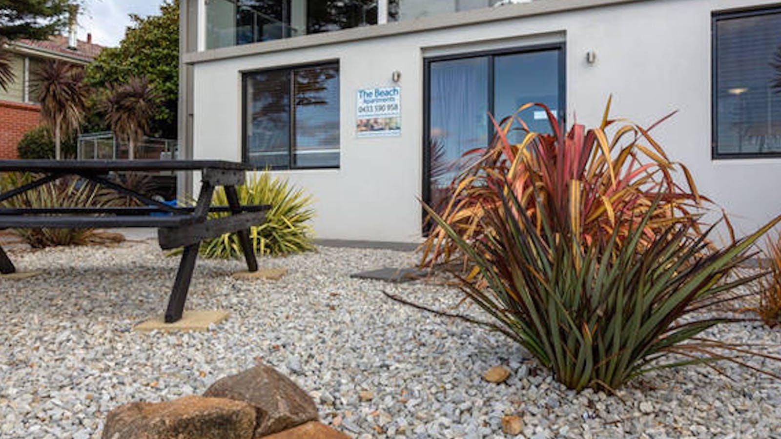 The apartments accommodate up to four guests with a queen bedroom and another room with two single beds. The luxury bathroom has a shower and spa in bath, and a large flat-screen television and DVD in the living. It has full kitchen facilities with stone benchtop, dishwasher, microwave, and oven and a complete laundry with a washer and dryer. Less than a five-minute stroll along the Esplanade is the modern up-market Beach Cafe/Restaurant with a takeaway and bottle shop next door.