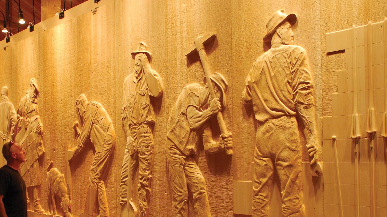 The Wall In The Wilderness is situated at Derwent Bridge in Tasmania’s Central Highlands. It is Australia’s most ambitious art project undertaken in recent years. By 2015 creator/designer, Greg Duncan plans to carve the history of the highlands in 100 metres of timber, most of which will be in our rare Huon Pine.