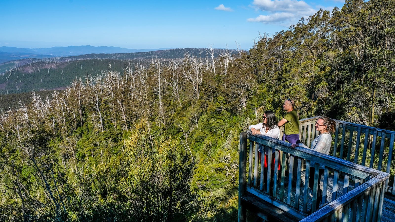 Start your visit to Hartz Mountains National Park with this short, easy walk along a gravel track to a viewing platform overlooking the Huon Valley. This walk provides a lovely opportunity to look out over the dense forests you’ve just driven through to reach the park.